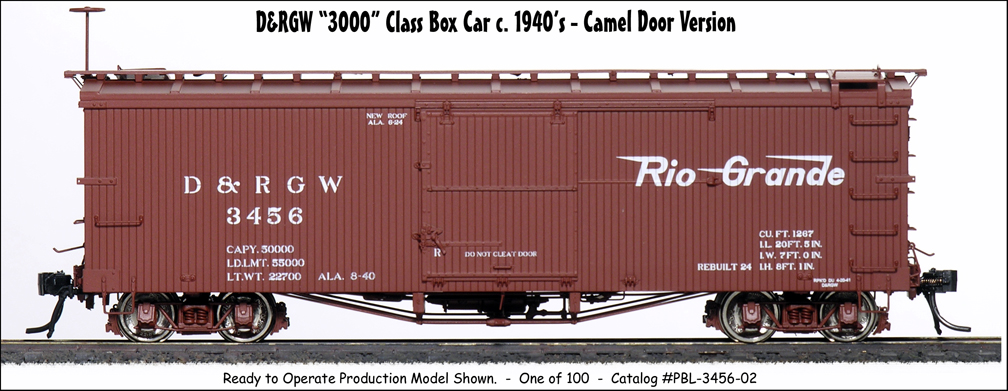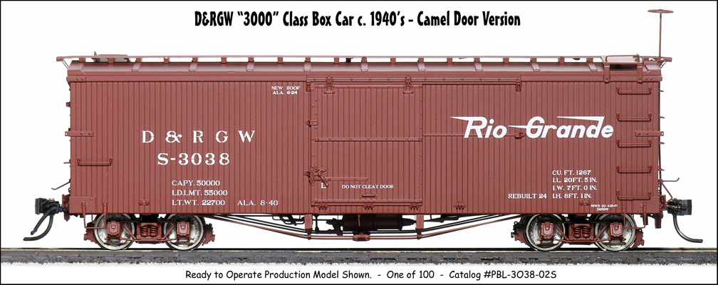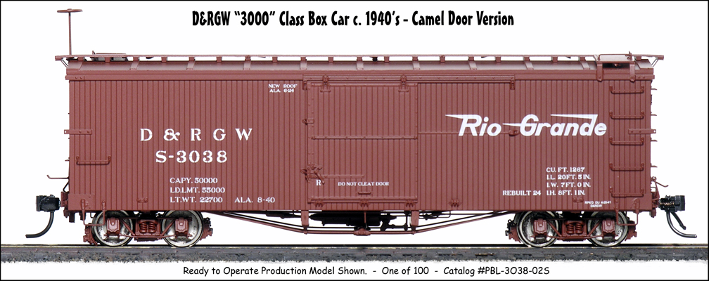 , car number #03057, an Economy Door car, and #03131, a Camel Door car...